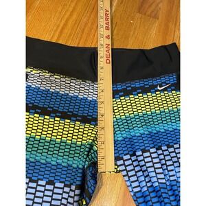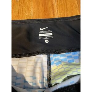Elevate your workout wardrobe with the Nike Better World Leggings, designed for women who value both style and performance. These size medium leggings feature a vibrant geometric pattern that stands out amidst the neutral tones of most activewear. The blended fabric of nylon and spandex ensures a comfortable stretch fit, allowing for unrestricted movement whether you're running, jogging, or engaging in any dynamic activity.