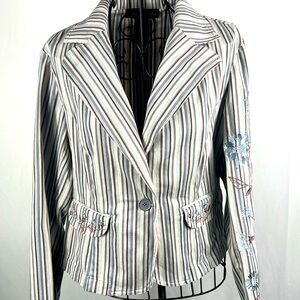 Jones Wear White and Blue Pinstriped Blazer Sports-Coat Woman’s Size 10