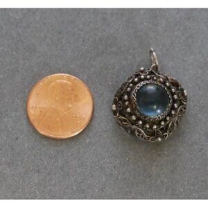 Vintage delicate silver 3/4" pendant for necklace with unknown blue stone handmade from China NO CHAIN INCLUDED