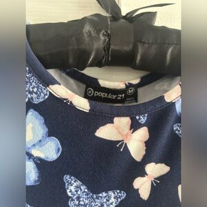 Popular 21 Beautiful Navy Butterfly Print Dress with Midriff Slit Sz Med EUC