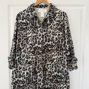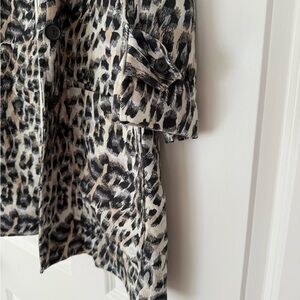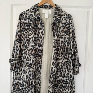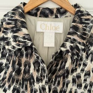 Stylish leopard print trench coat by Chloe. Features a classic collar and button closure. Perfect for a chic look.
