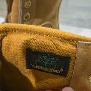 Stylish Timberland boots in a classic tan color. Perfect for any casual outing. some wear and marks on exterior but tons of life left, eclectic grandpa