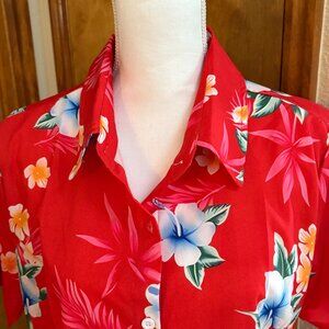 Two ladies' Hawaiian button down shirts, both size L.