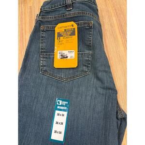 NWT CARHARTT RUGGED FLEX RELAXED FIT MEDIUM WASH LOW RISE MENS JEANS 36x34