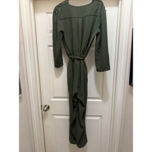 Fraiche by J Olive Green Wrap Waist Tie Jumpsuit Women Size L