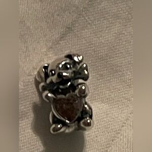 Pandora 925 Sterling Silver Dog with a Bone Charm and Pink Heart
