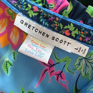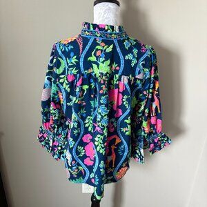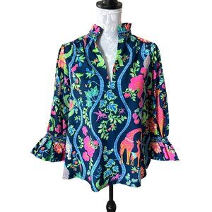 Gretchen Scott Ruffleneck Tunic Womens Jungle Symphony Top Large Colorful
