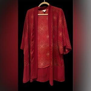 NWOT LuLaRoe ‘AURORA’ Red Kimono Sz Medium with Gold Accents