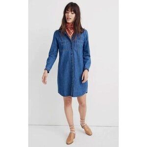 Madewell Denim Puff-Sleeve Shirtdress in Harris Wash Blue Size Small