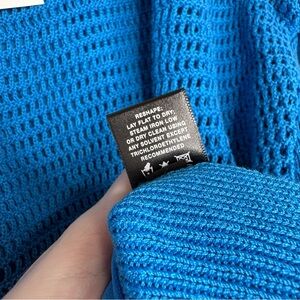 NWT Lafayette 148 New York MSRP $368 Cerulean Blue Sweater Open Crochet Large