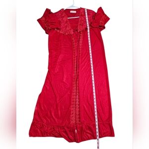 Wanlida Womens Red Sheer Lace Robe XXL Vintage Lingerie Romantic Boudoir 80s