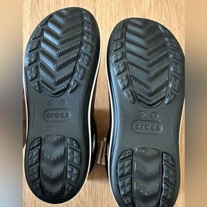 Comfortable and waterproof. Ideal for any weather. Never worn before a little dusty but material is easy to wipe off. Great tread and perfect fit. Crocs brand.