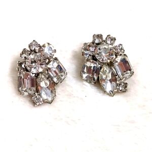 Vintage Mid Century Clear Crystal Rhinestone Clip Earrings