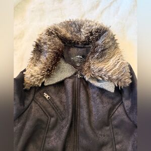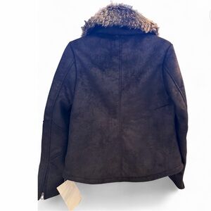 Montanaco Women's Stylish Dark brown metallic Teddy Jacket with Faux Fur Trim