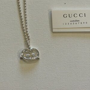 Stylish Gucci polished bead necklace with a silver GG pendant. Box opened but never worn. One length Ideal for a chic look. Approximately 15” long so more of a choker depending on neck size. Giftable or for you from you;)