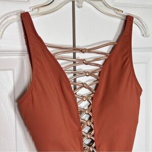 Bleu Rod Beattie Plunge One Piece Swimsuit Brown Gold