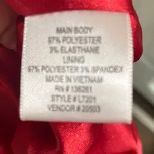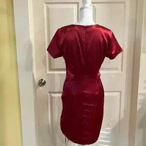 Elevate your wardrobe with this stylish Newport News dress, size 10, presented in a rich maroon color. The dress is crafted from a comfortable blend of 97% polyester and 3% elastane in the main body, with a matching 97% polyester and 3% spandex lining for a smooth fit. Although new without original tags (NWOT), the dress with minimal superficial wear from being previously displayed in a retail store setting. This dress is a sophisticated choice for various occasions and is a "dry clean only" item to maintain its quality.