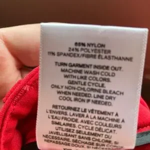 Vibrant red slim fit pants. Perfect for a bold look. 65% Nylon 24% Polyester 11% Spandex.