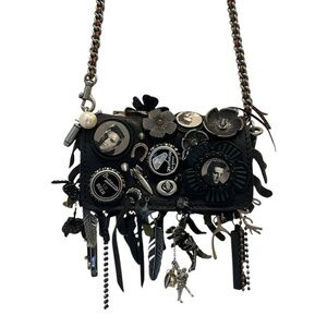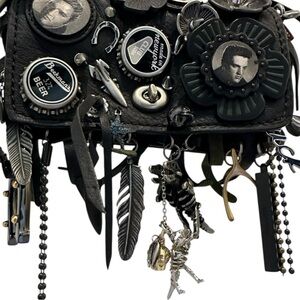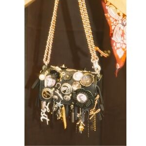 Coach Dinkier with fun embellishments and charms on exterior: Elvis patches, retro bottle caps, Southwestern-inspired conchos and other nostalgic surprises!