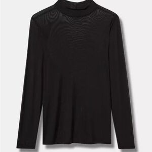 Black Torrid Mesh Mock Neck Long Sleeve Top in Deep Black.