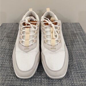 Step up your footwear game with these stylish men's sneakers in white and tan. Perfect for everyday wear and comfort.