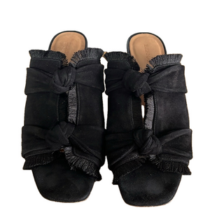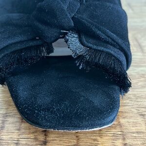 Anthropologie Bernardo Fae Black Suede Fringe Sandals size 8.5