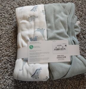 Two towels, one dinosaur print.