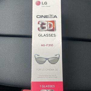 Set of LG Cinema 3D glasses. Includes multiple pairs. Sleek black design. Boxes not all in perfect condition but no issues with glasses