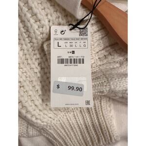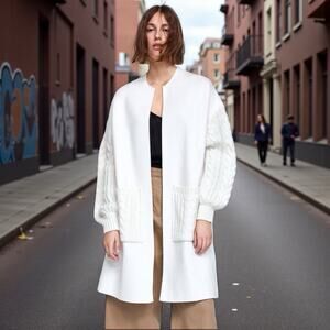 Zara Long Knit Cardigan Sweater Coatigan Off White Cream Women’s Size L Pockets
