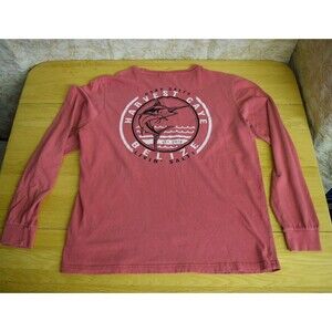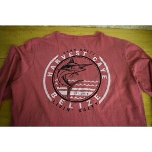 Mens Medium Harvest Caye Belize Stay Salty Red Long Sleeve Vintage Look Shirt