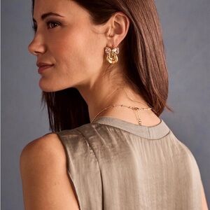 Elegant CAbi earrings with gold loops and silver accents. Perfect for any occasion.