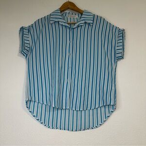 Chic blouse with blue and white stripes. Short sleeves and button-up design. Ideal for everyday style.