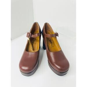 Fly London ERIL Platform Pumps Cognac & Navy Leather Retro 70s Chunky Heel 38