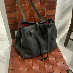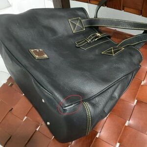 Dooney & Bourke Black Leather Tote with Gold Accents