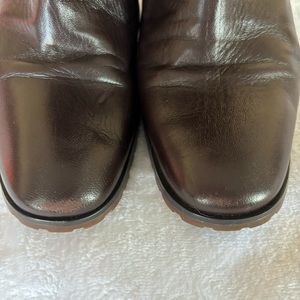 Leather upper and man made sole.