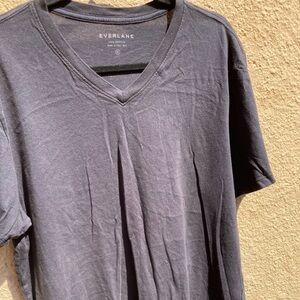 Men's Everlane T-Shirt Black Solid Classic XL Crew Cotton Casual Everyday City V-Neck. 100% Cotton. Made in USA.