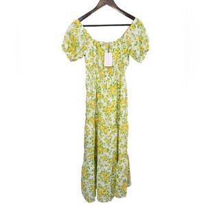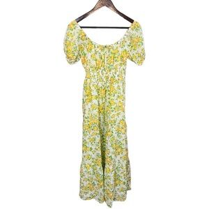 Faithfull the Brand Dress Matisse Boho Floral Linen Midi Sz M