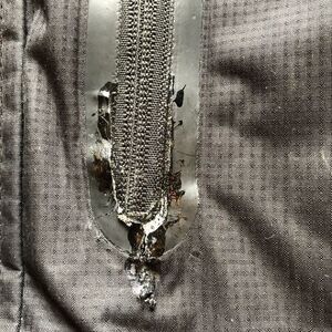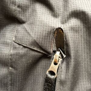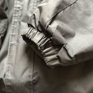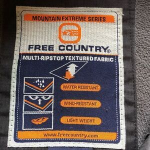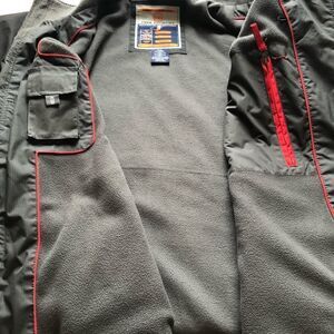 Very good condition. Mountain extreme series. Elastic and velcro cuffs. Front zip and velcro closure. 2 inner pockets. Zip pocket on left sleeve. Bottom hem tightener. 3 pockets on front of jacket. 3 flaws-tape on right zip pocket, blemishes on left breast pocket, tear inside left cuff (see photos). No hood. Fleece lined.