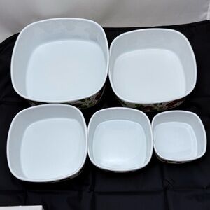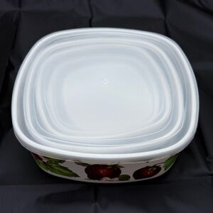 Includes a nesting set of 4 melamine storage containers with lids and an original 1988 Del Monte Country Yumkin “Country Strawberry” plush.