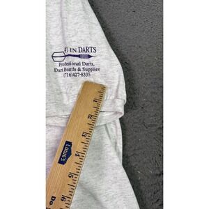 Right sleeve has "#1 In Darts Professional Darts, Dart Boards & Supplies (716) 427-8335" graphic