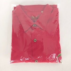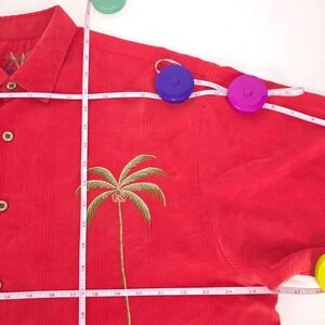 Bamboo Cay Palm Tree Shirt XL Red Embroidered Button Up Island Camp Modal Blend