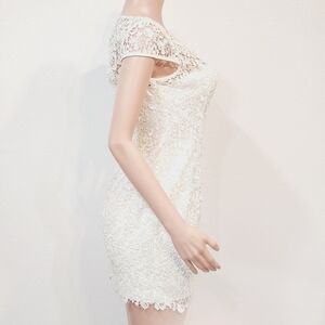 Adrianna PAPELLWhite Cap-Sleeve Illusion Lace Sheath Size 8