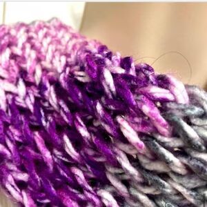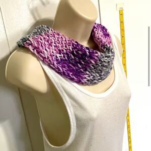 Handmade Knitted Infinity Scarf – Gray, Purple, Lilac, and White Accents