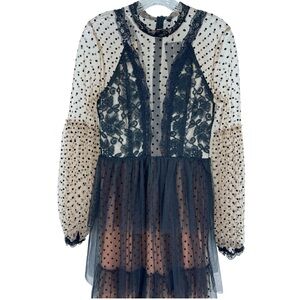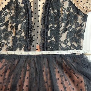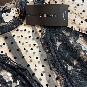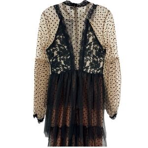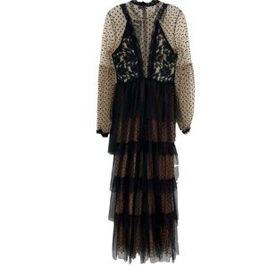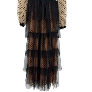 Giffniseti NWT Mesh Polkadot Whimsygoth Witchy Fairy Black Cream FlowyMaxi Dress