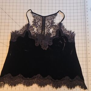 This elegant black camisole features delicate lace trim, perfect for adding a touch of sophistication to any outfit. Ideal for layering or wearing on its own.