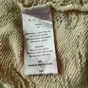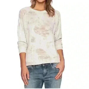 IRO Jeans Sudami Distressed Pullover Crew Neck Cropped Sweater Cream Beige Small