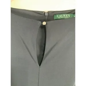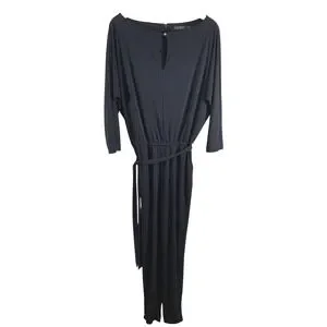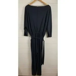 Lauren Ralph Lauren Womens Stretch Jersey Jumpsuit M Blue Tie Keyhole 3/4 Sleeve