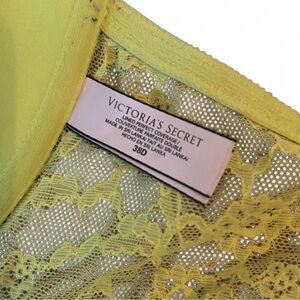 This beautiful Victoria's Secret bra offers a smooth, seamless fit with the comfort of full coverage. It features a vibrant lime yellow hue and a stunning lace racerback design that is perfect for wearing under tank tops.