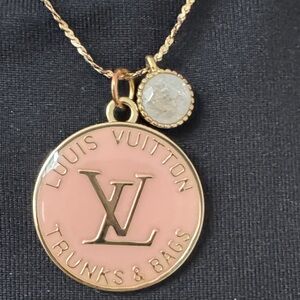 Louis Vuitton Pink zipper pull Gold Double Pendant Necklace.