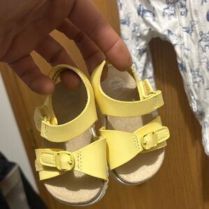 Bright yellow kids sandals perfect for sunny days. Comfortable and stylish for little feet. Size 2